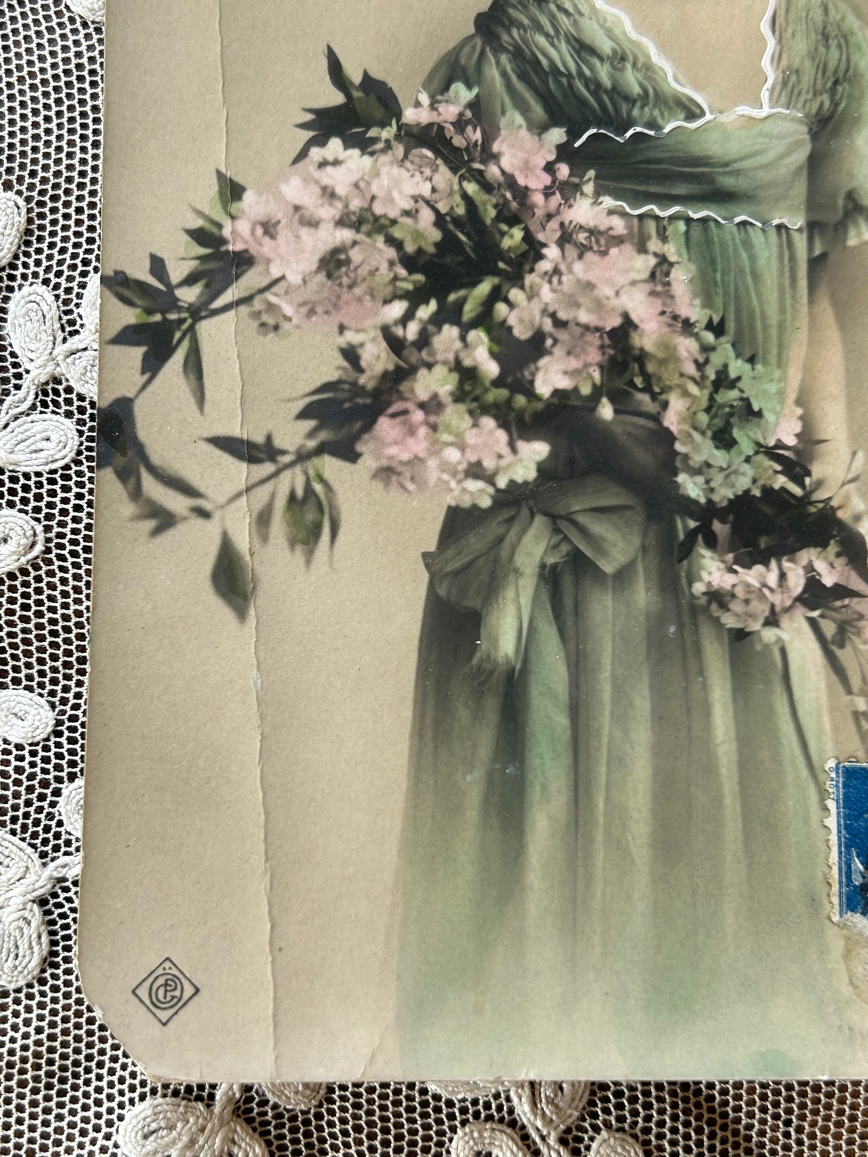 アンティークポストカード BONNE FETE 少女 フラワー 花 12KO40