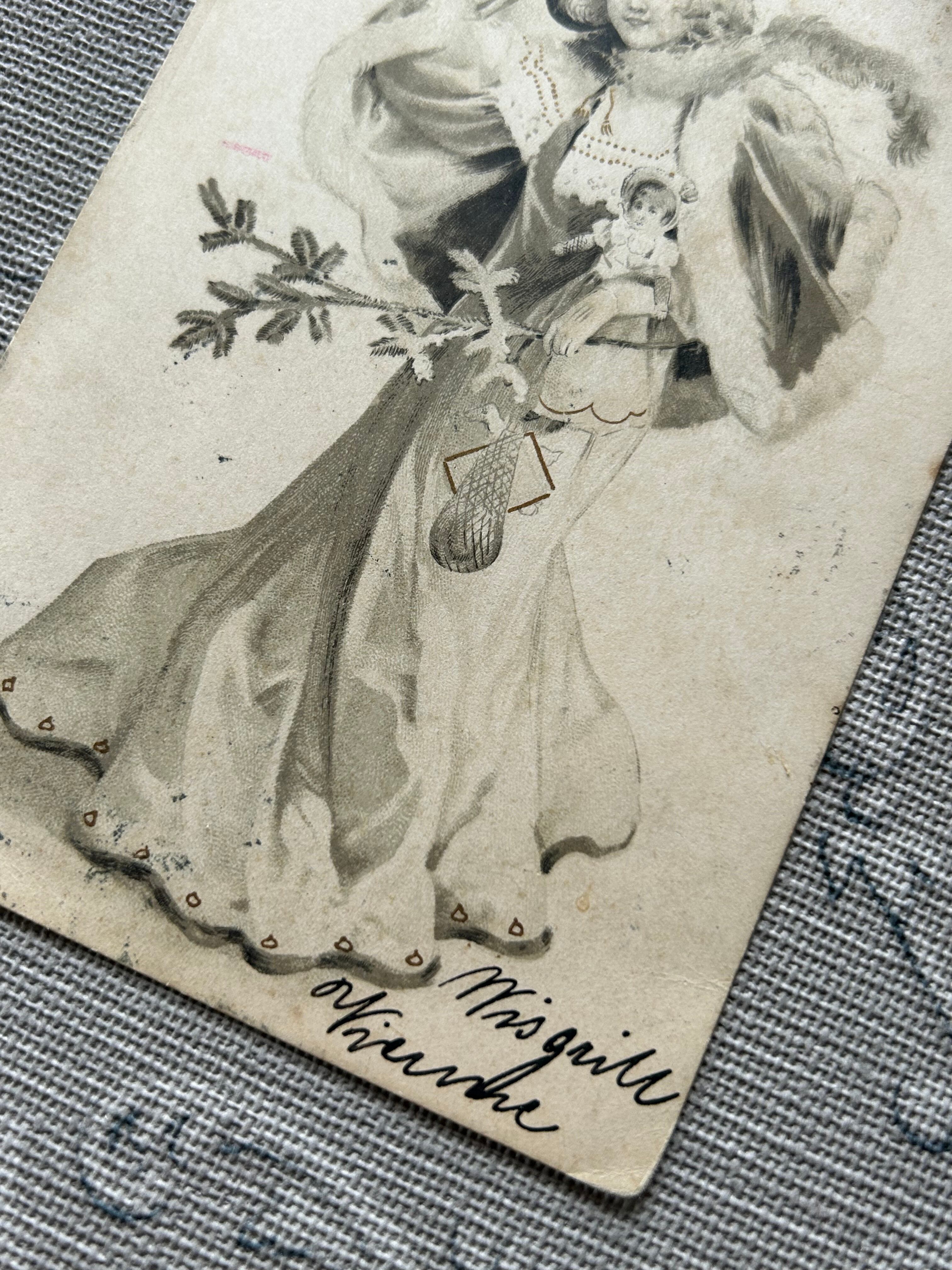 アンティークポストカード Fröhliche Weihnachten ドイツ語 メリークリスマス Noel 貴婦人 12KO61