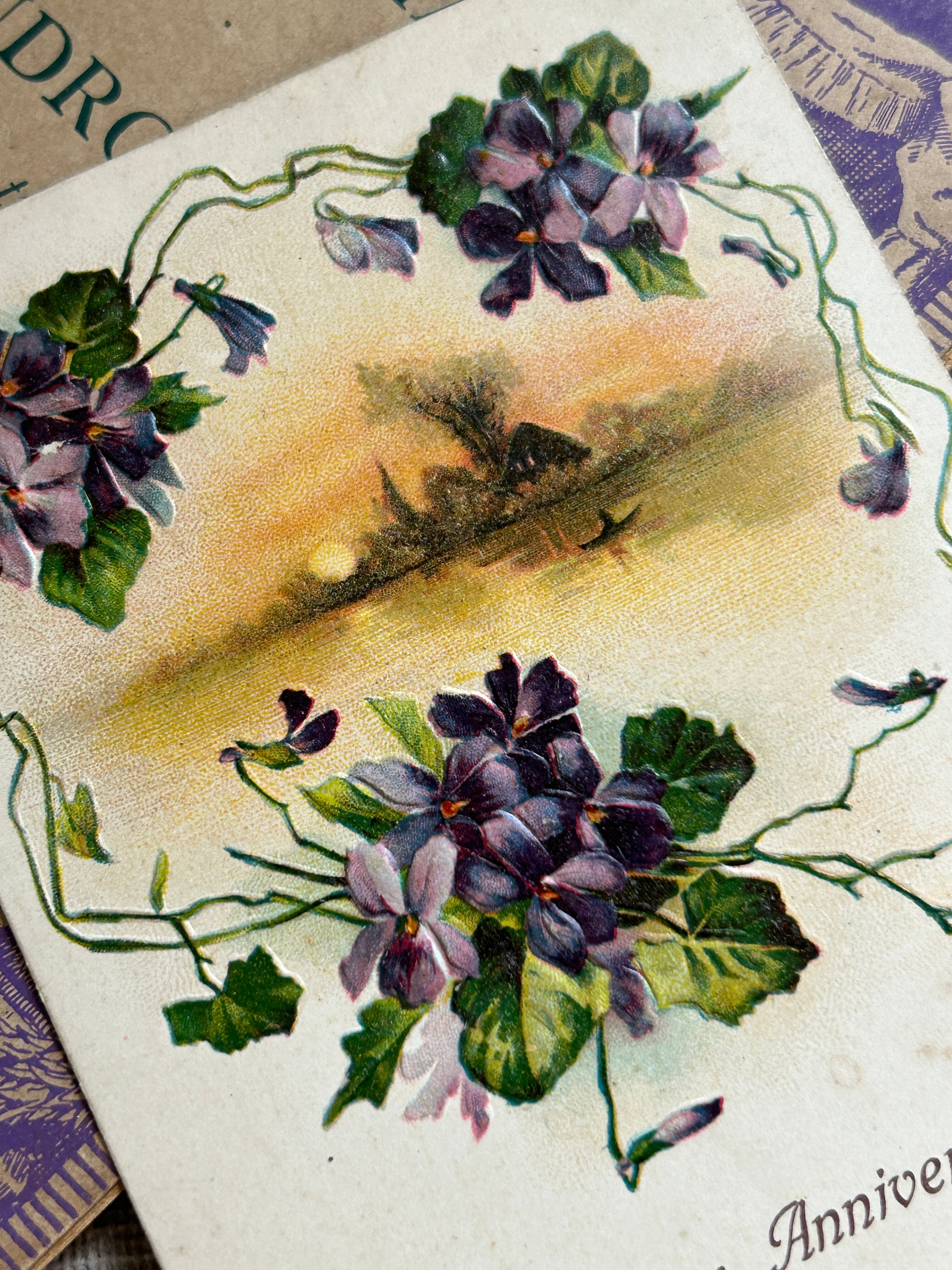 アンティークポストカード Heureux Anniversaire すみれ violette 1KO102