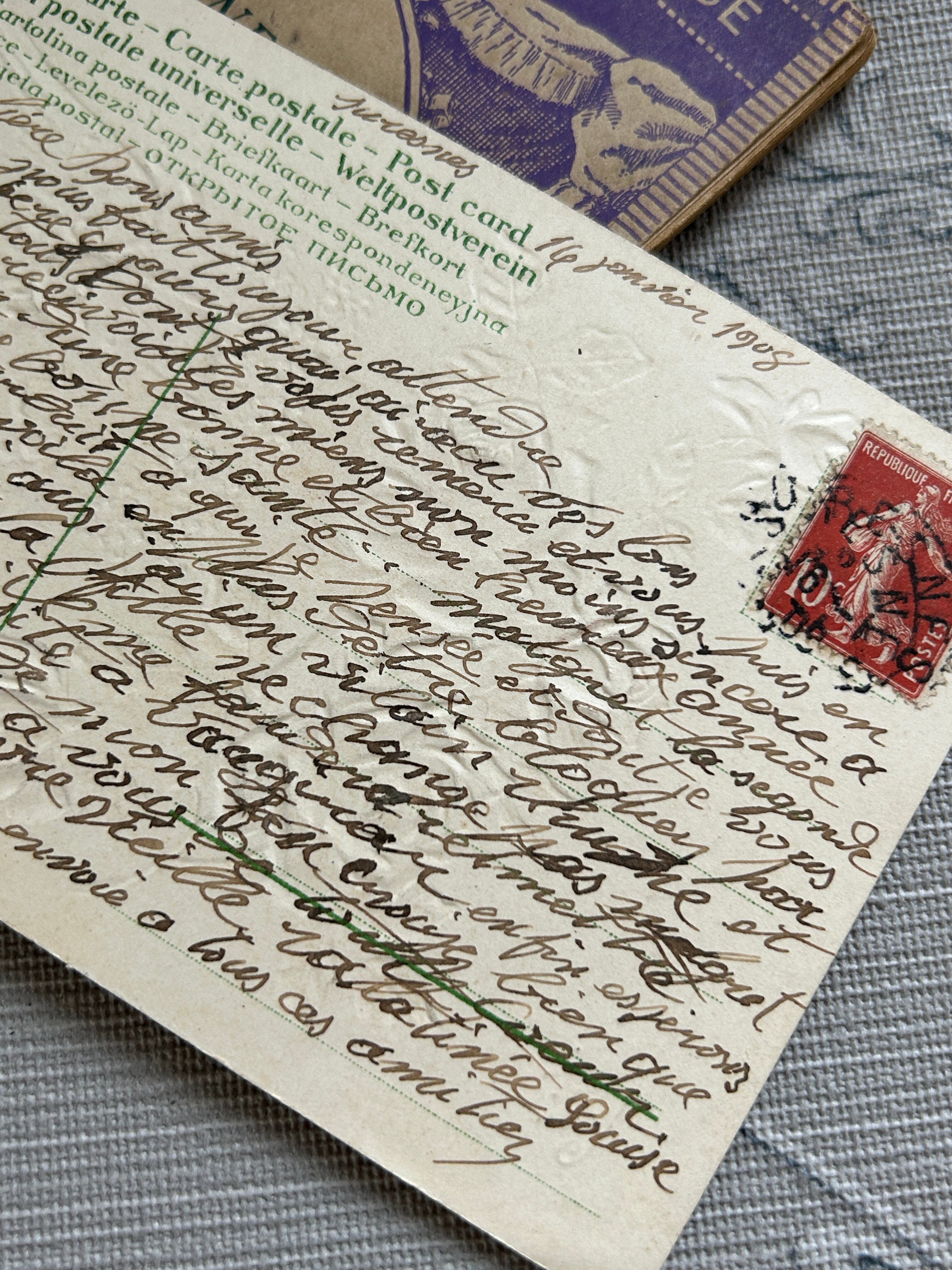 上品で贅沢なアンティークポストカードです。凹凸のあるエンボス加工が施してあります。