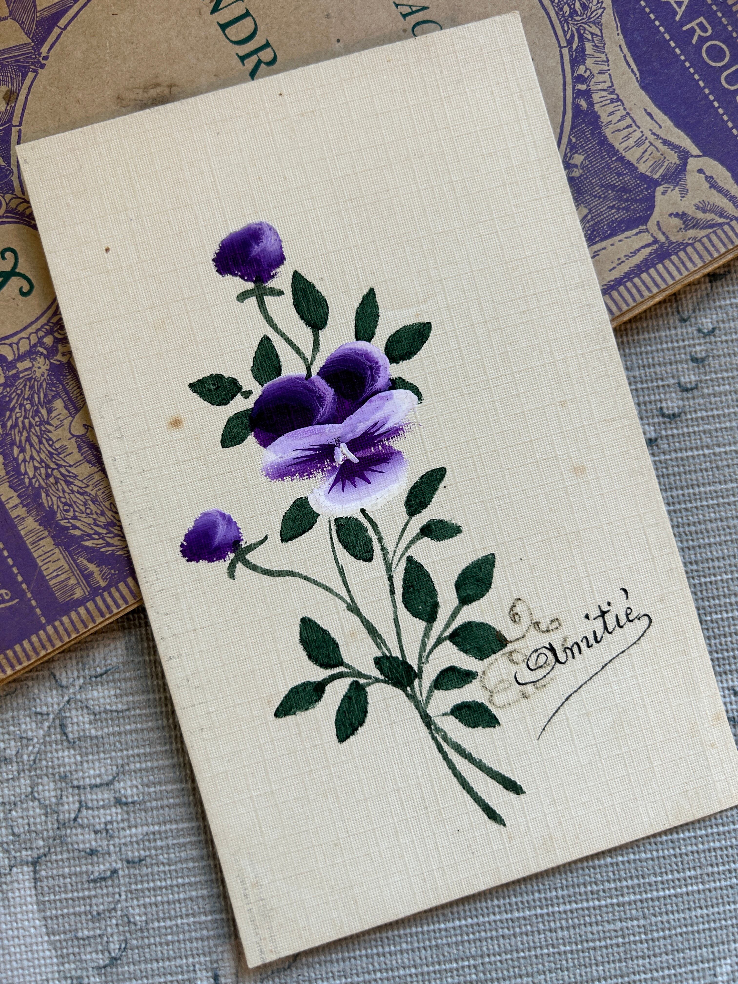 シンプルですが手描きのパンジーが味のある1枚です。