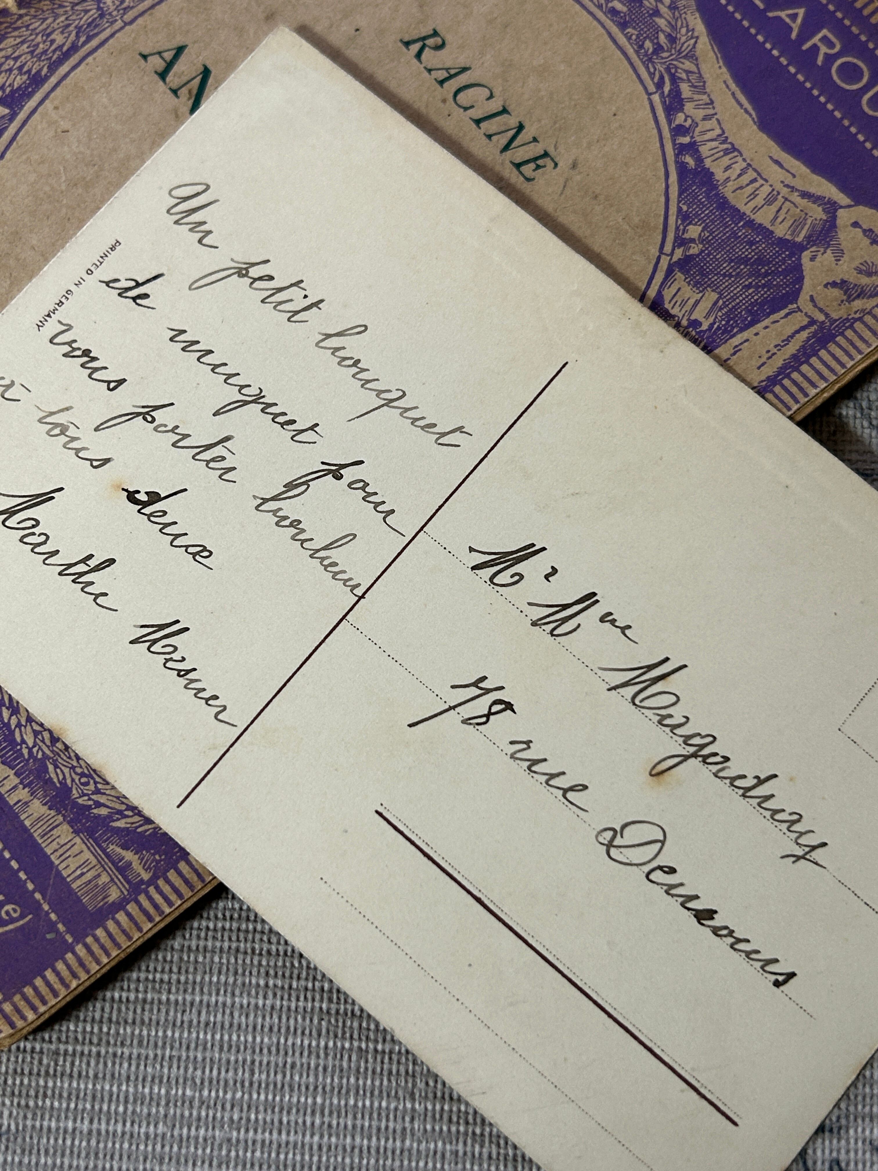 アンティークカード/ヴィンテージカードは古いものです。書き込み、切手・消印があるものをはじめ、経年による汚れや変色、破れ、折れ、キズ等のダメージがございます。