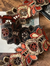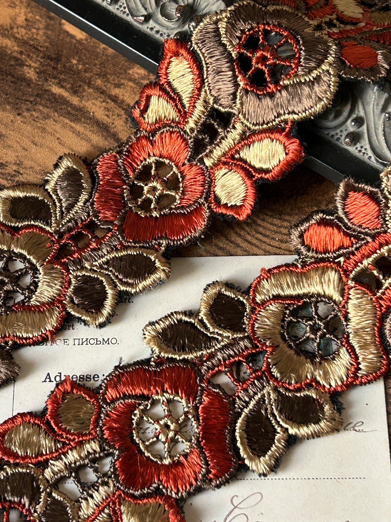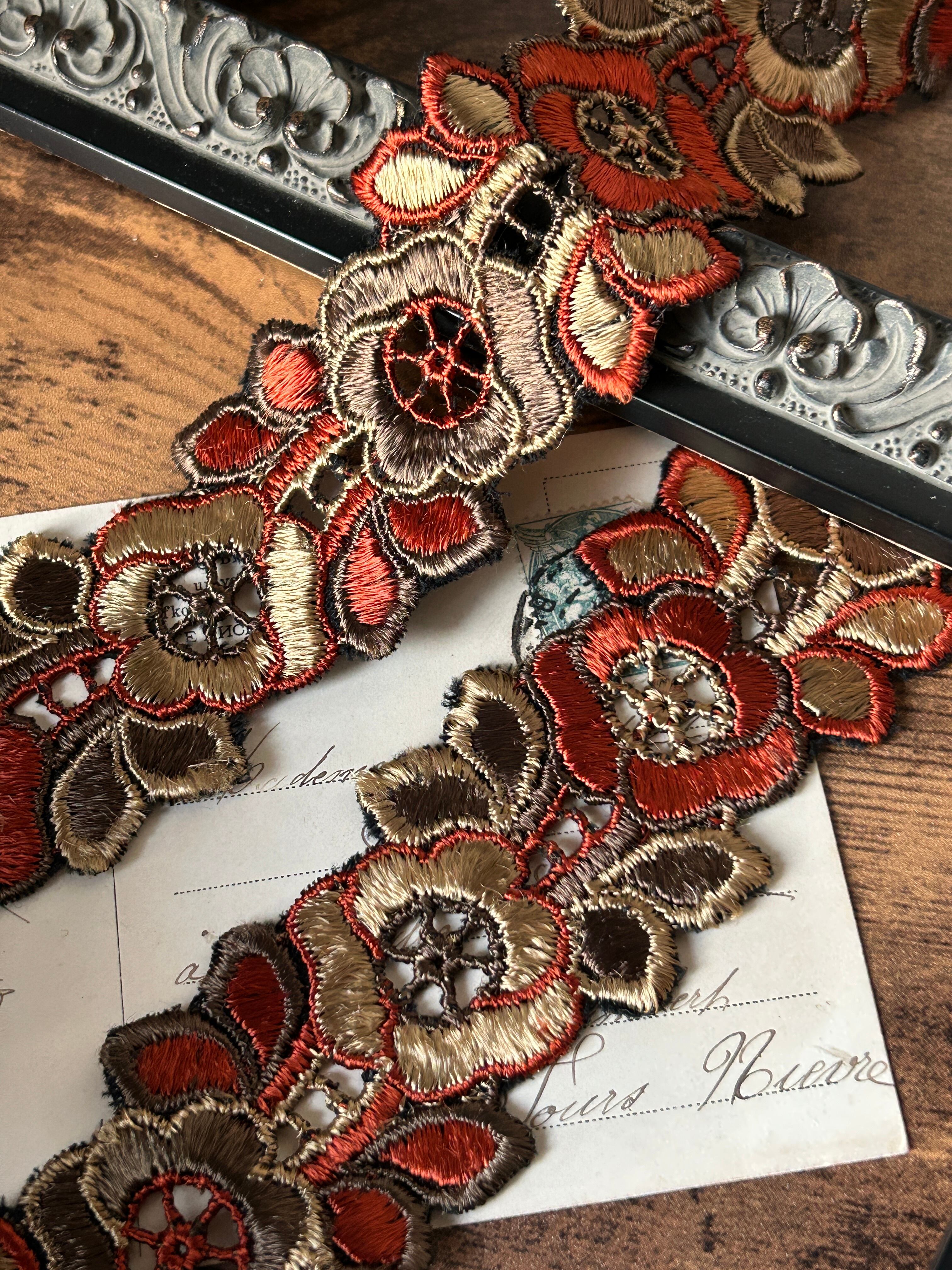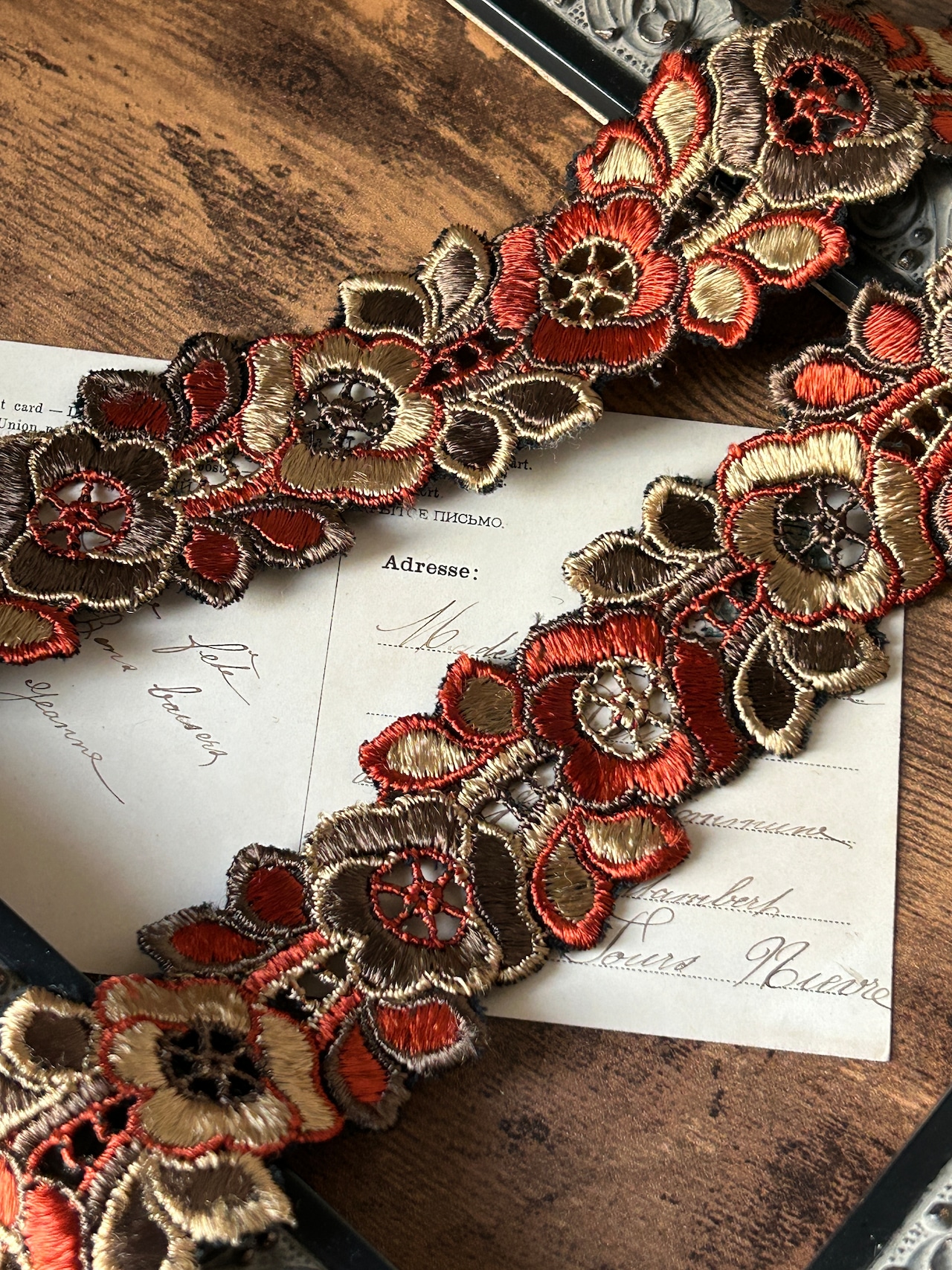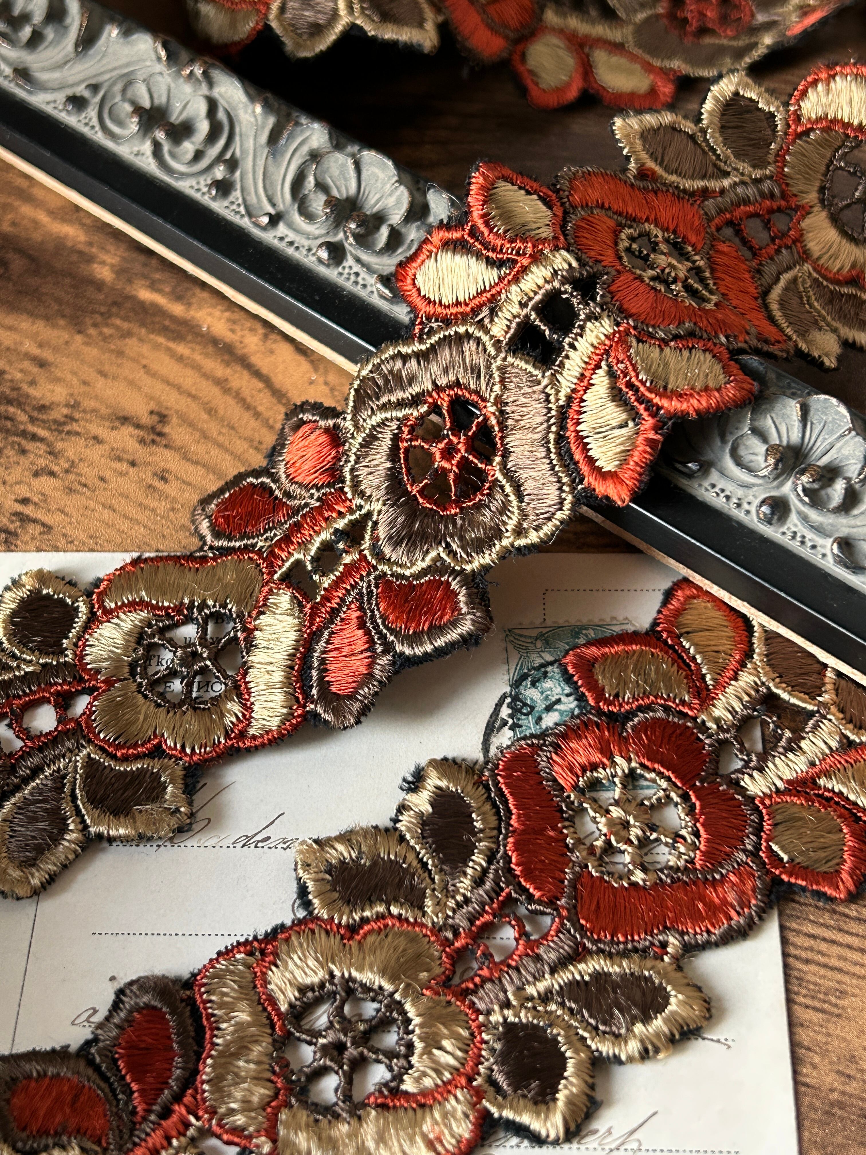 フランスVintage フラワー刺繍 ブレード 約4.1cm カルトナージュ オータムカラー 2KO339