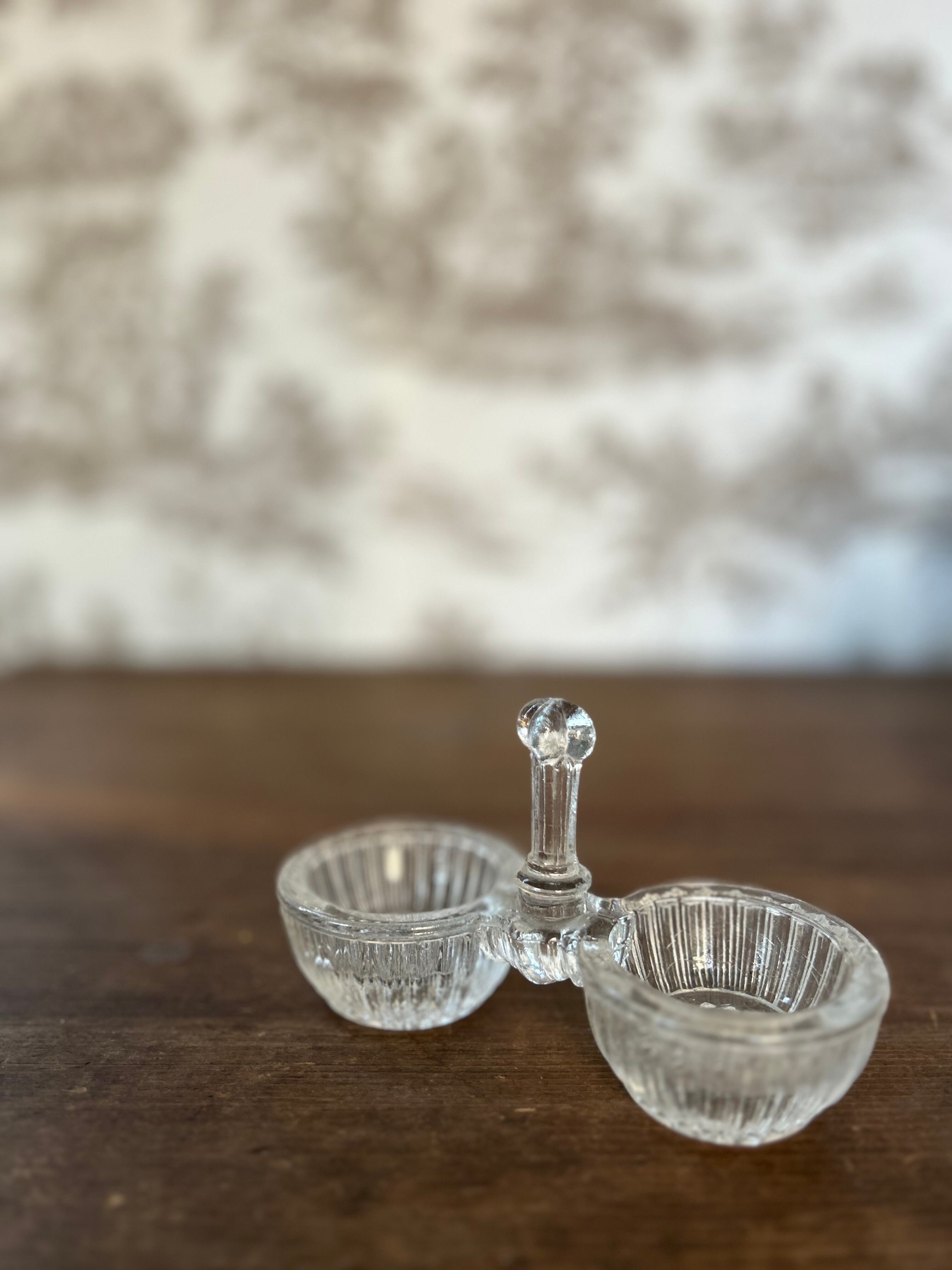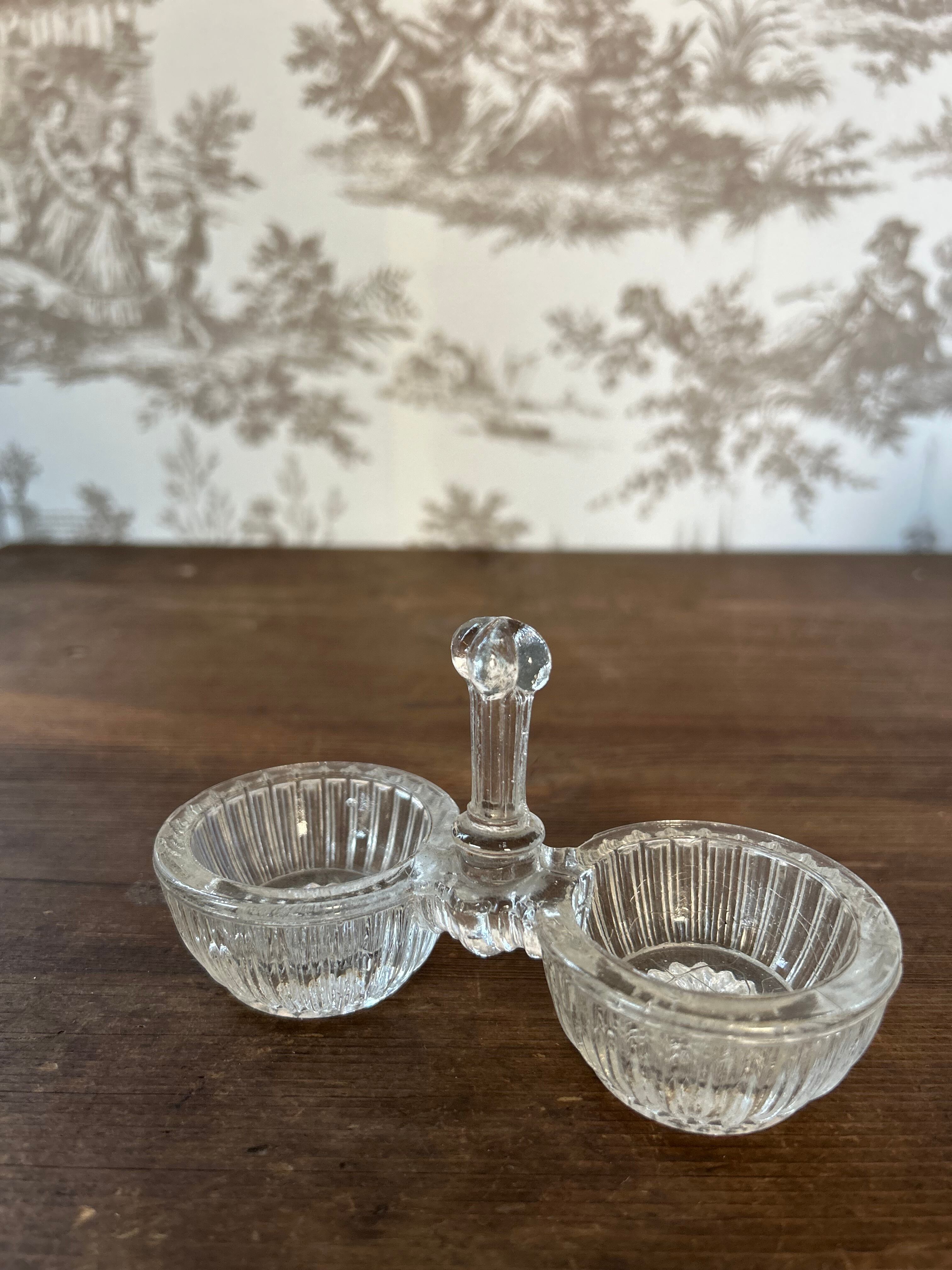 フランスアンティーク ガラスのソルト&ペッパー S&P 薬味入れ フラワーベース 小物入れ 12KO7