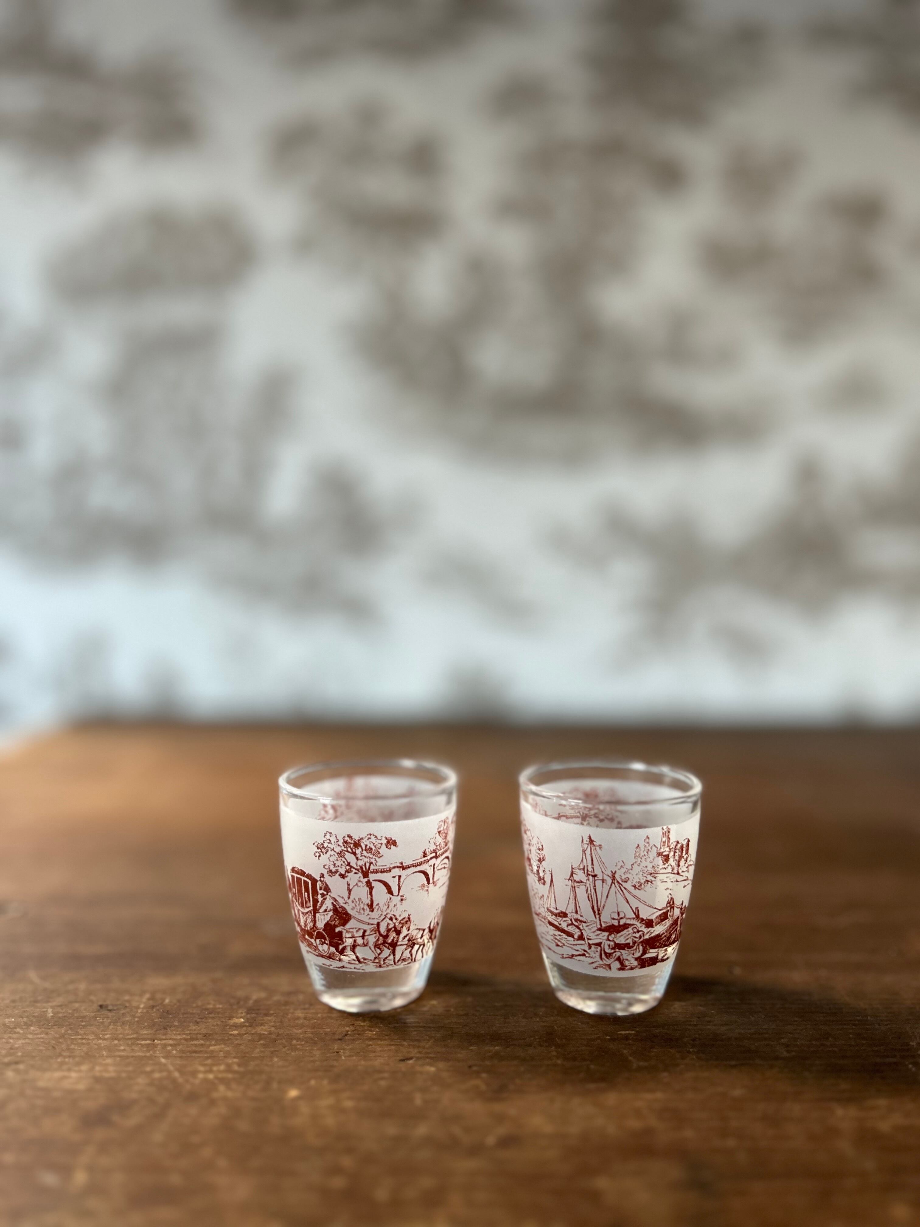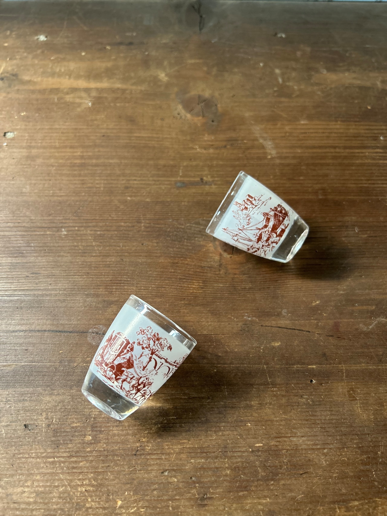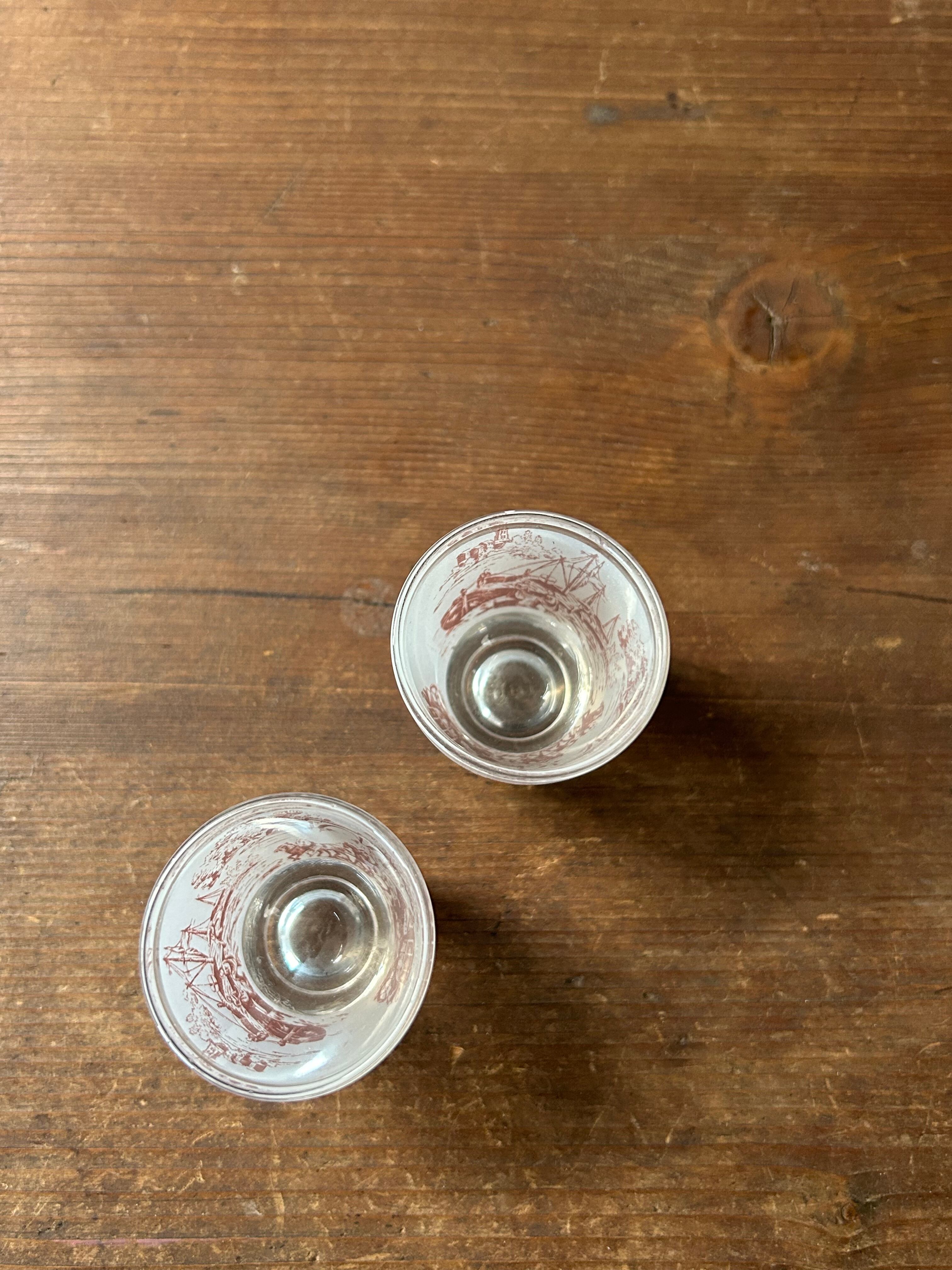 フランスVintage リキュールグラス タ 風景柄 トワルドジュイ ブラウン 1KO35